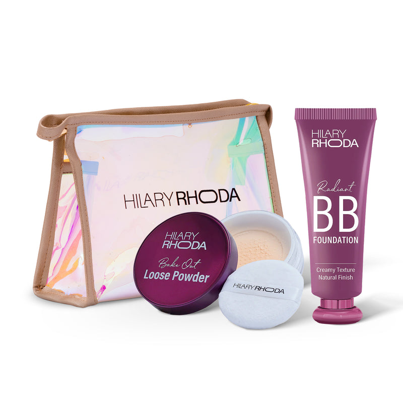 Achieve a flawless, long-lasting complexion with Hilary Rhoda’s BB Cream & Loose Powder Duo! Start with the Radiant BB Foundation, an ultra-creamy formula bb cream that's a perfect bb cream for face make-up. This BB foundation for women provides a dewy finish and hides blemishes & dark spots, making it ideal for daily wear. It's a lightweight BB cream for the face that offers 9 to 5 stay, acting as your go-to bb foundation cream. Set your radiant base with the Bake Out Loose Powder, a brilliant setting loose powder for the face that delivers a perfect matte finish. This loose powder for women blurs imperfections and offers incredible oil control, making it the ultimate loose powder for oily skin. It's a weightless loose powder and an essential setting powder for a long-lasting and creaseless look, ensuring your make-up stays put all day as a setting loose powder. This makes it a great addition to your makeup kit or makeup organiser bag, ensuring your makeup set is complete. It's also an excellent choice for a makeup combo kit or to simply upgrade your makeup bag for women with key makeup products.