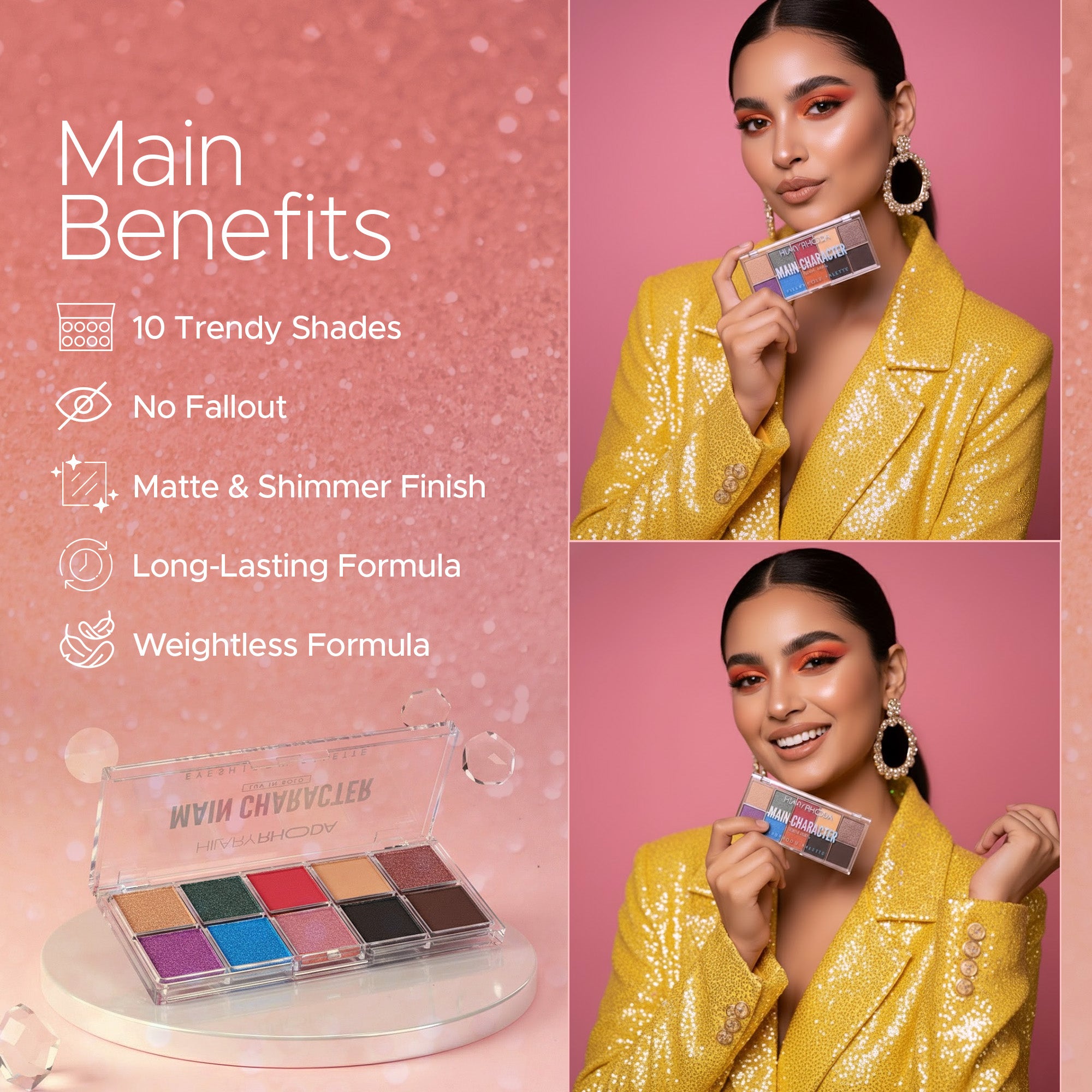 Highly Pigmented and Blendable | 10 Shades | Multicolour | Matte & Shimmer Finish | Smudge Free | Long Wearing | No Fallout